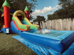 This 13x32x15 bounce house will bring hours of entertainment to all ages. The combos like this one will host up to 15 guests at one time between the bounce house and the pool. It is perfect for birthday parties, school functions, corporate events where you will host large groups. Can be used wet or dry.