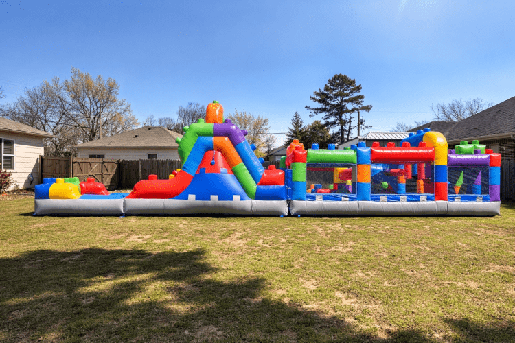 SlideLego Obstacle Course: Slide1Dropdown03235275_32352530000Lego Obstacle Course Slide This colorful inflatable obstacle course and slide combo turns any event into an action-packed playground. Designed for kids, it features a fun, LEGO-inspired look and a sequence of challenges that lead up to a thrilling slide finish. The sturdy bounce surface and soft obstacles provide safe, active play, while bright colors and playful design keep children engaged. Ideal for birthday parties, school events, community gatherings, or backyard fun, this rental offers energetic entertainment that encourages climbing, crawling, and sliding in a contained, supervised space. Easy to set up by the rental team and simple to monitor during use, it’s a crowd-pleaser that delivers excitement without sacrificing safety.