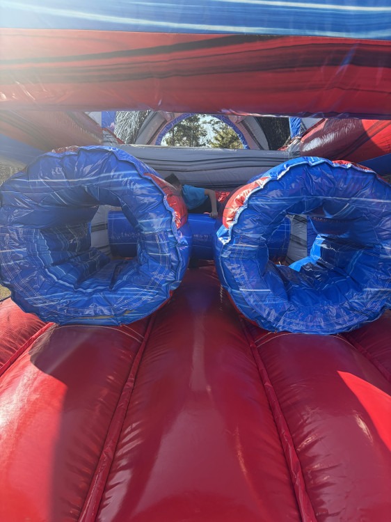 - OCCUPANCY: A maximum of 5-6 kids of equal size at one time for bounce houses, and 1 person at a time for slides is what most inflatable manufacturers recommend.